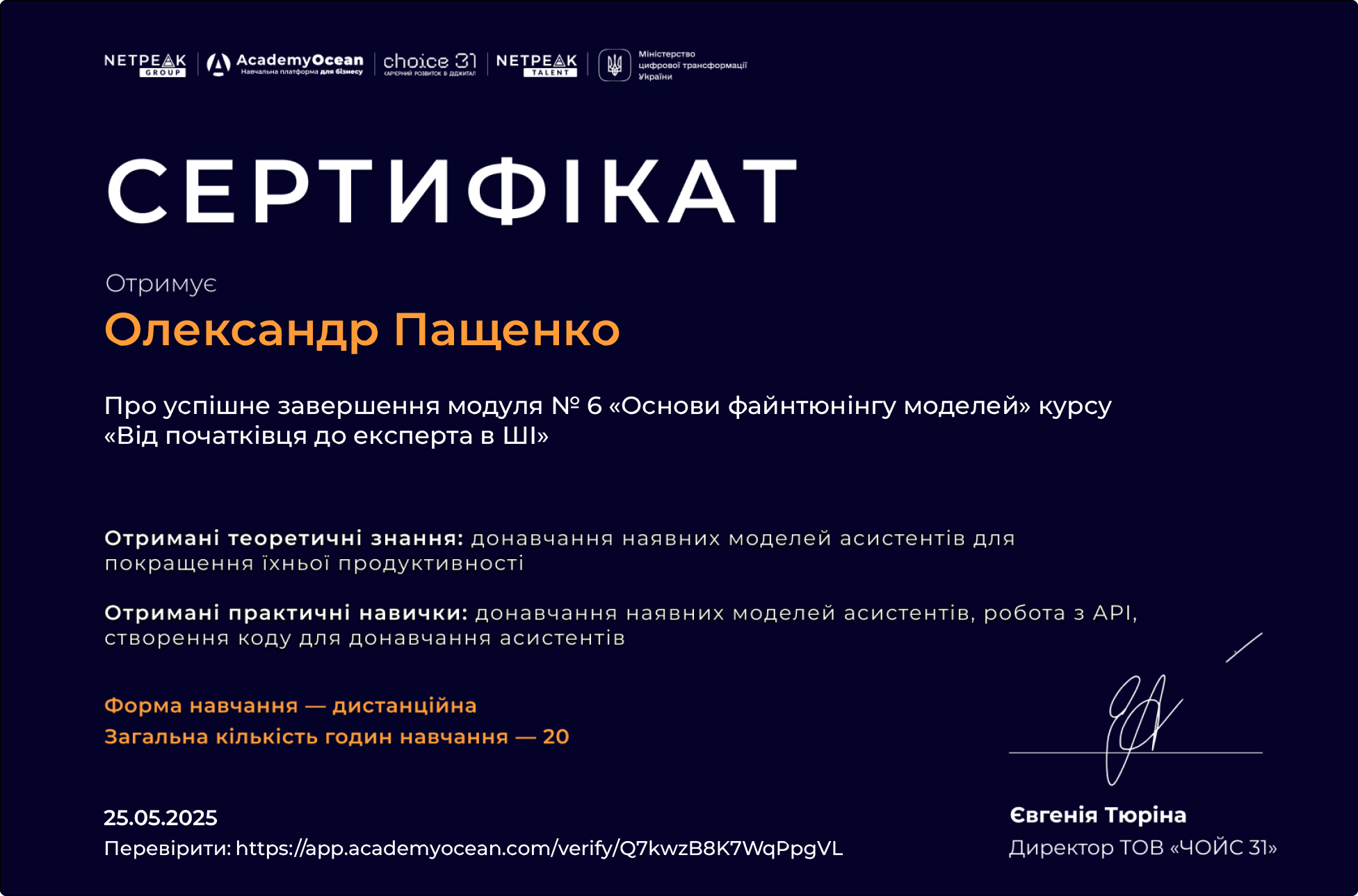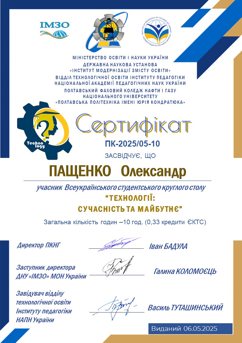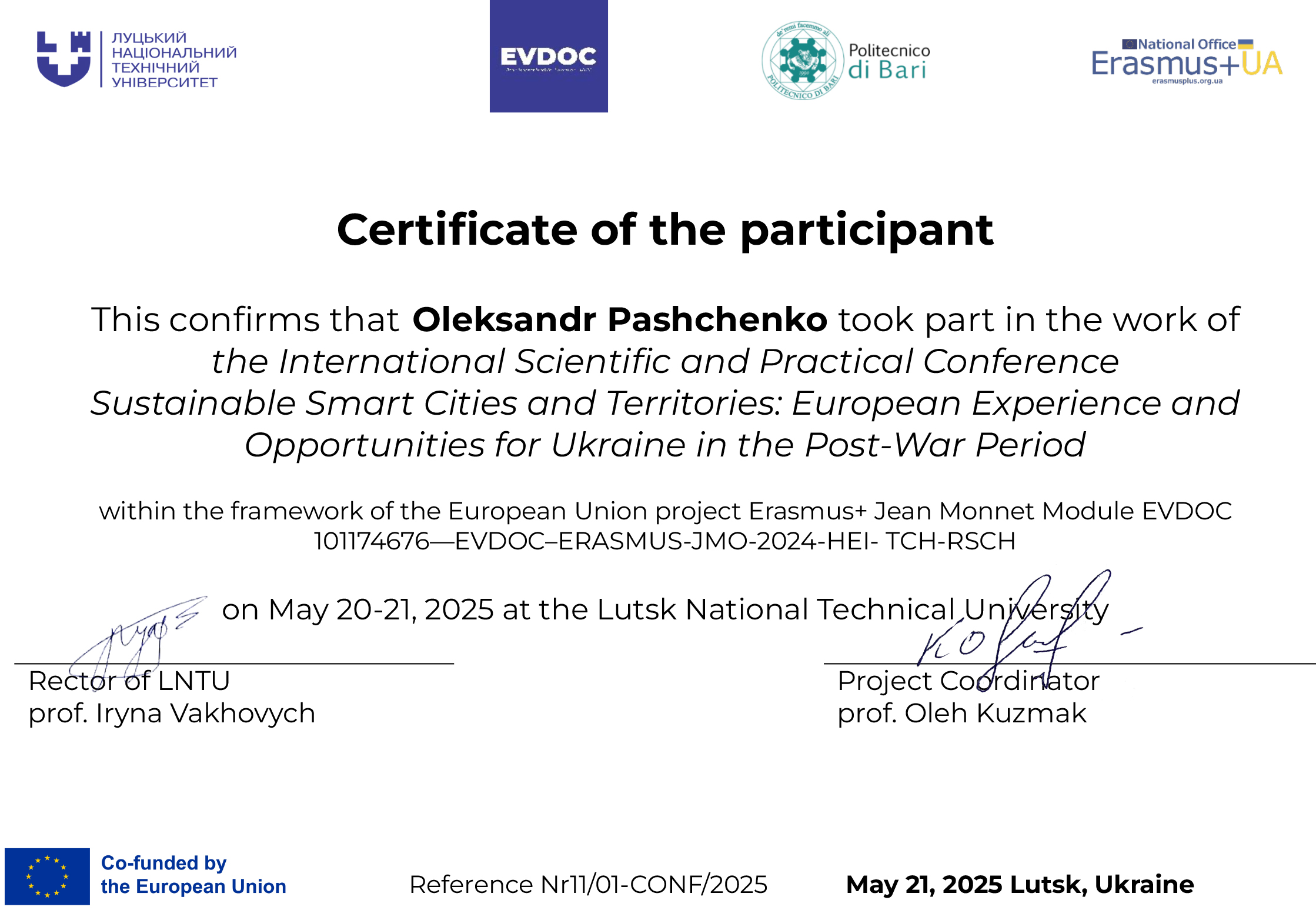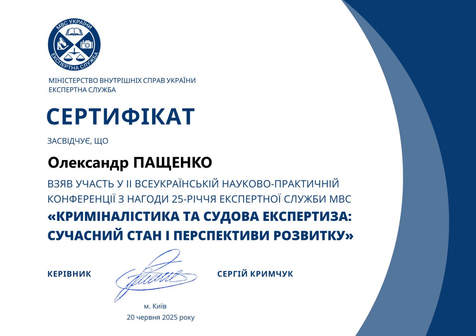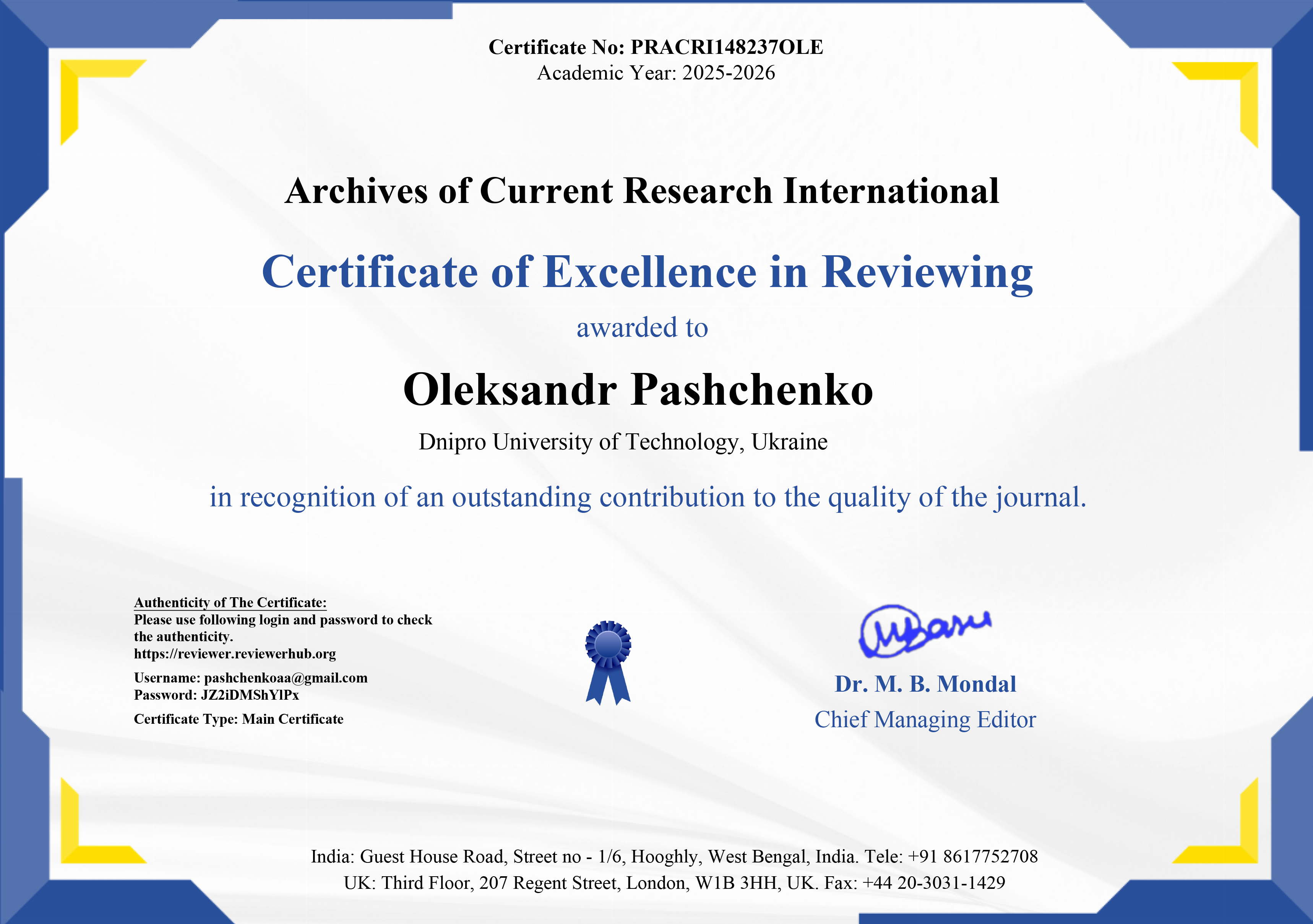 5. NGO Européen Scientific Plotform (Vnnytsio. Heroine) LLC Internotionol Centre Corporative Monogement (Vienno. Austria); Сертифікат GS170223-167, 17.02.2023; тема: «SCIENTIFIC RESEARCHES AND METHODS OF THEIR CARRYING OUT: WORLD EXPERIENCE AND DOMESTIC REALITIES»; кількість кредитів – 0,3 (9 годин).
