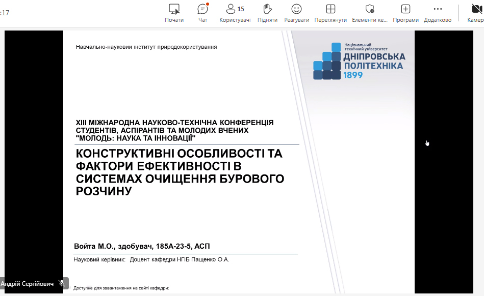 12 листопада відбулась робота Секції 1 – Технології видобутку, переробки та транспортування корисних копалин в рамках IX Всеукраїнської науково-технічної конференції студентів, аспірантів та молодих вчених "Молодь: наука та інновації"