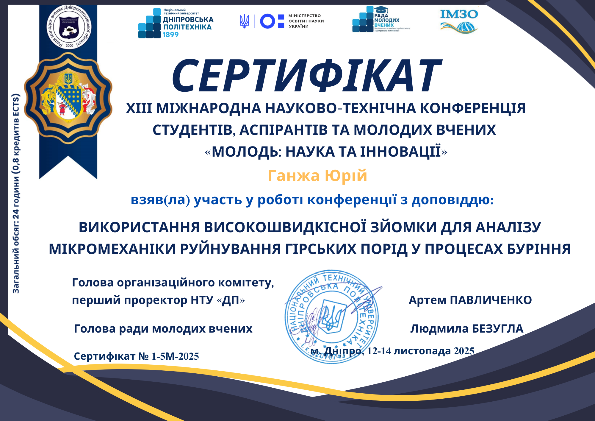 Тема дисертаційної роботи – “Дослідження впливу параметрів руйнування гірських порід на динаміку процесів за допомогою високошвидкісної зйомки”.