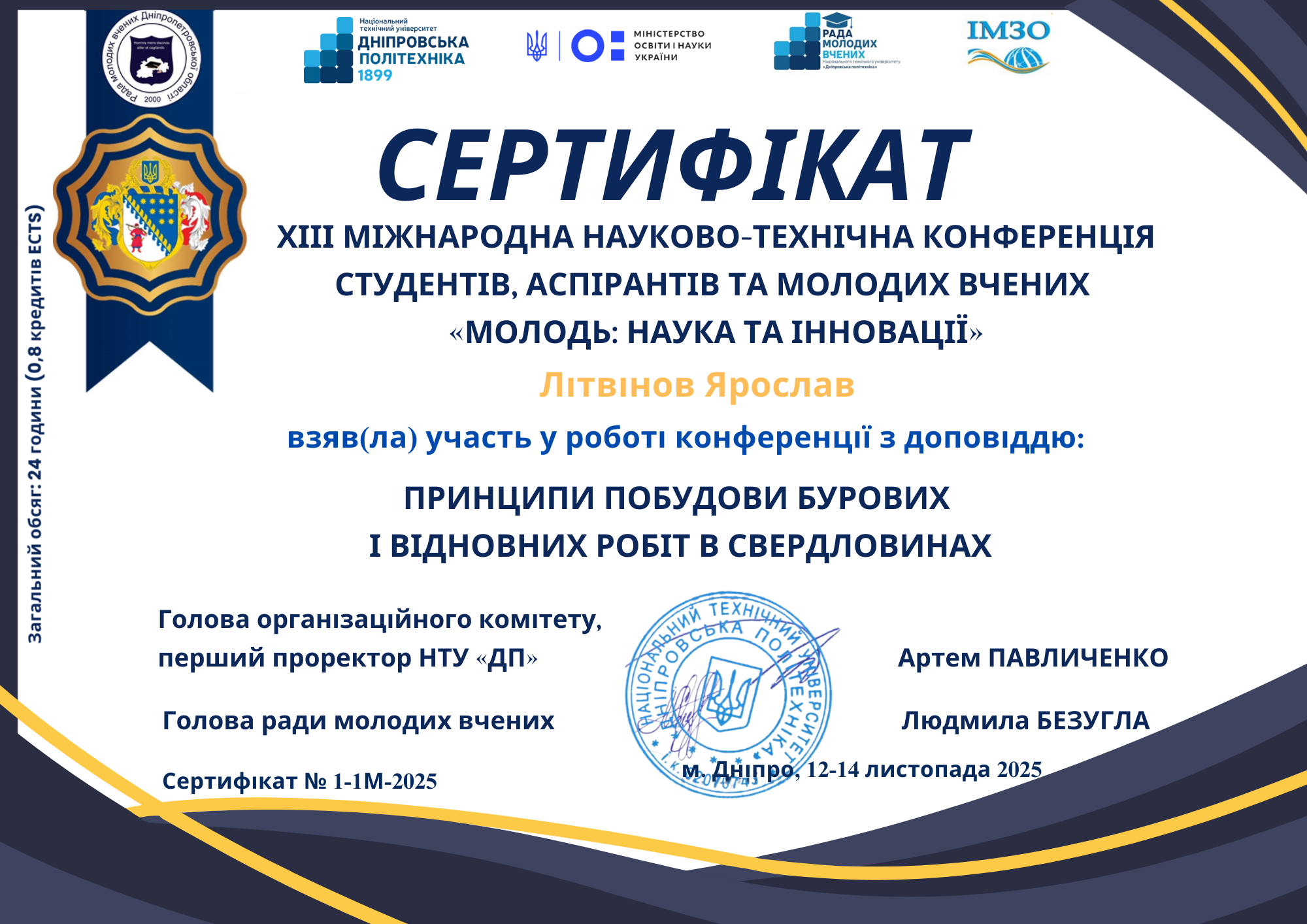 10.2025 - аспірантура зі спеціальності «Нафтогазова інженерія та технології» в Національному ТУ «Дніпровська політехніка»..