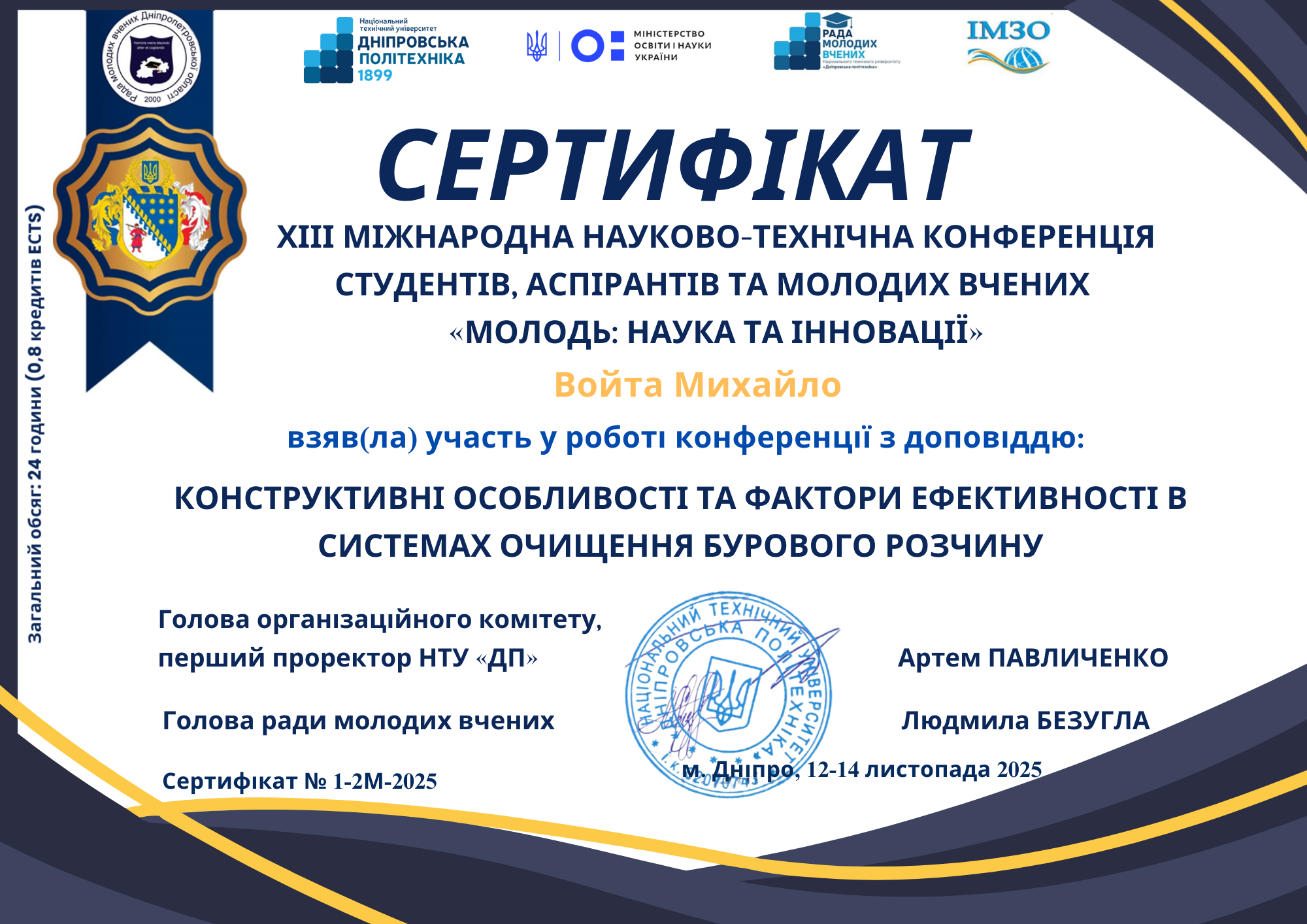 05.2023 - аспірантура з напрямку нафтогазової інженерії в Національному ТУ «Дніпровська політехніка».